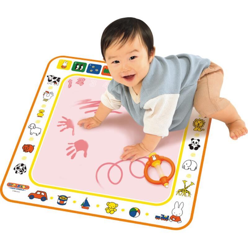 はじめてのおえかきにオススメ。付属のペンに水道水を入れれば準備完了!布製シートは水で描くと発色し、乾くと消えるので洋服や周囲を汚すことなく何度でも繰り返しお絵描きできます。専用ペンは小さなお子様の手に持ちやすく安全な形状になっています。