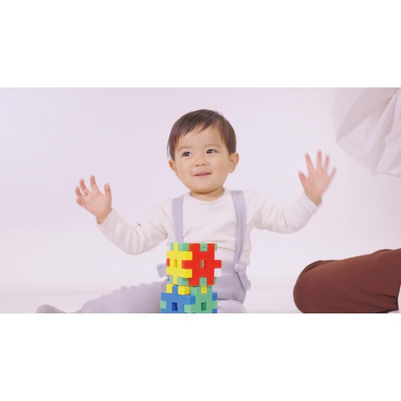 ニューブロックはじめようセットはつまむ、さすなどで手指の遊びから、組む・見立て遊びまで成長に合わせて長く遊べます。遊びの幅が広がる人型&動物パーツ入り。またケース蓋にブロックをさして遊ぶこともできます。