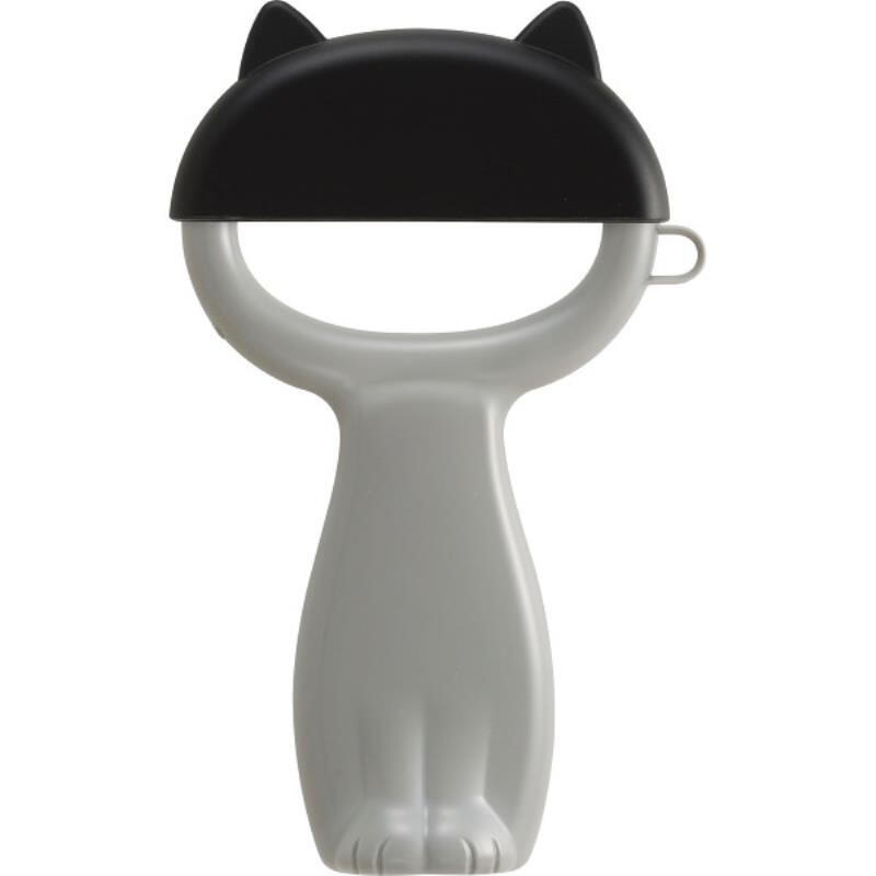 ネコデザインのかわいいピーラー。収納に安心な刃カバー付。芽取りもついた便利なピーラーです。ハンドルの内側は、ミニおろしに。ちょっと生姜をおろしたいときなどに便利です。ネコの足型のハンドルと、耳のついたカバー、さらにミニおろしの目立てもネコの形をしています。