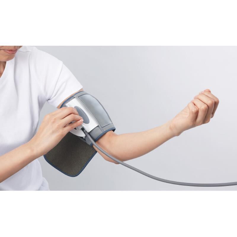低室温を感知すると測定を中止し、適度な室温での測定を促します。測定をしたい時刻に合わせて最大3件までアラーム設定が可能です。測定結果を3段階の血圧レベルで表示します。2ステップで簡単装着できるクリップアームカフを採用しております。2人分の測定結果を90回分メモリーします。(最高・最低血圧値、脈拍数、温度)直近の測定結果2回分の平均値を表示します。脈間隔の変動チェック機能付です。