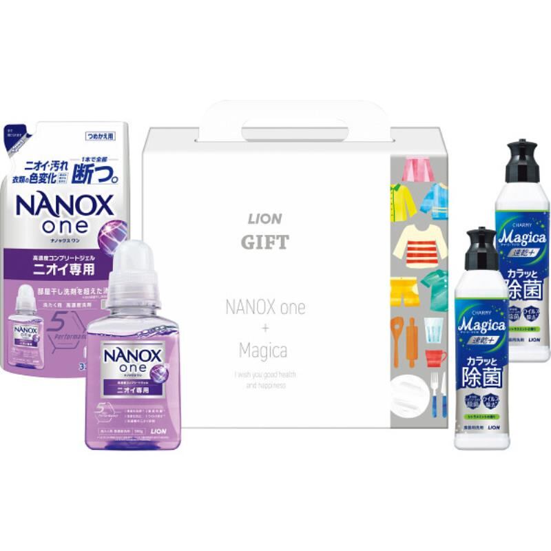商品内容:●ナノックスワンニオイ専用本体380g・同詰替用320g×各1、チャーミーマジカ速乾プラスカラッと除菌(シトラスミント)220g×2