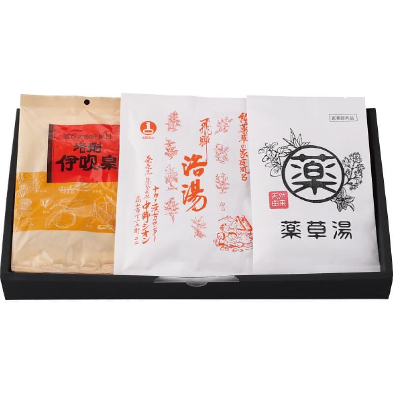商品内容:●薬草湯30g・飛騨浴湯50g・浴剤伊吹泉50g×各1※医薬部外品