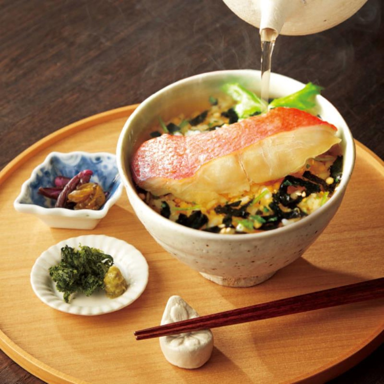 機内食でも採用された本格出汁茶漬けのセットです。大きな具材と、出汁にもこだわり、贅沢なひとときを堪能いただけます。お湯を注ぐだけで本格だし茶漬けをぜひ。