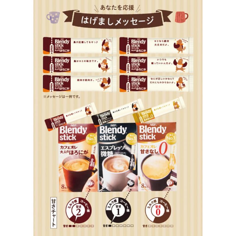 商品内容:●ブレンディスティックカフェオレ大人のほろにが8g×8、ブレンディスティックカフェオレ甘さなし8.3g×8、ブレンディスティックエスプレッソ・オレ微糖6.2g×8