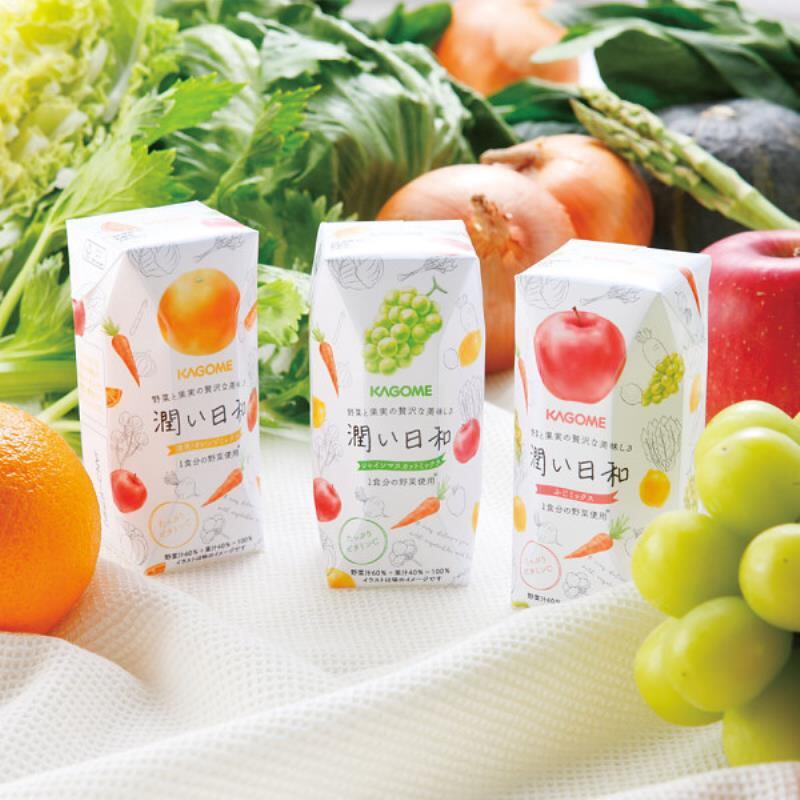 「潤い日和」ふじミックス・清見オレンジミックス・シャインマスカットミックスの3種を詰め合わせたギフトです。1本(200ml)に1食分の野菜120g分を使用しながら、フルーティーで贅沢な美味しさをお楽しみいただけます。