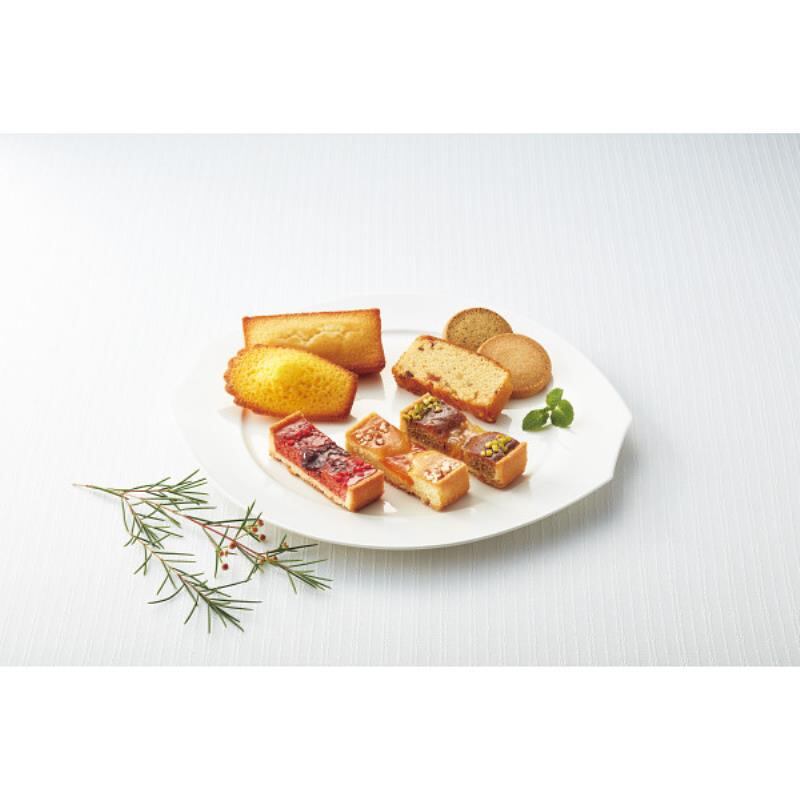 商品内容:●タルト(ショコラオランジュ・りんごとフランボワーズ・ブルーベリーのタルト)×各1、マドレーヌレモン×3、ハートフィナンシェ(キャラメル味)×3、サブレバニーユ×7、ティグレフレーズ×2