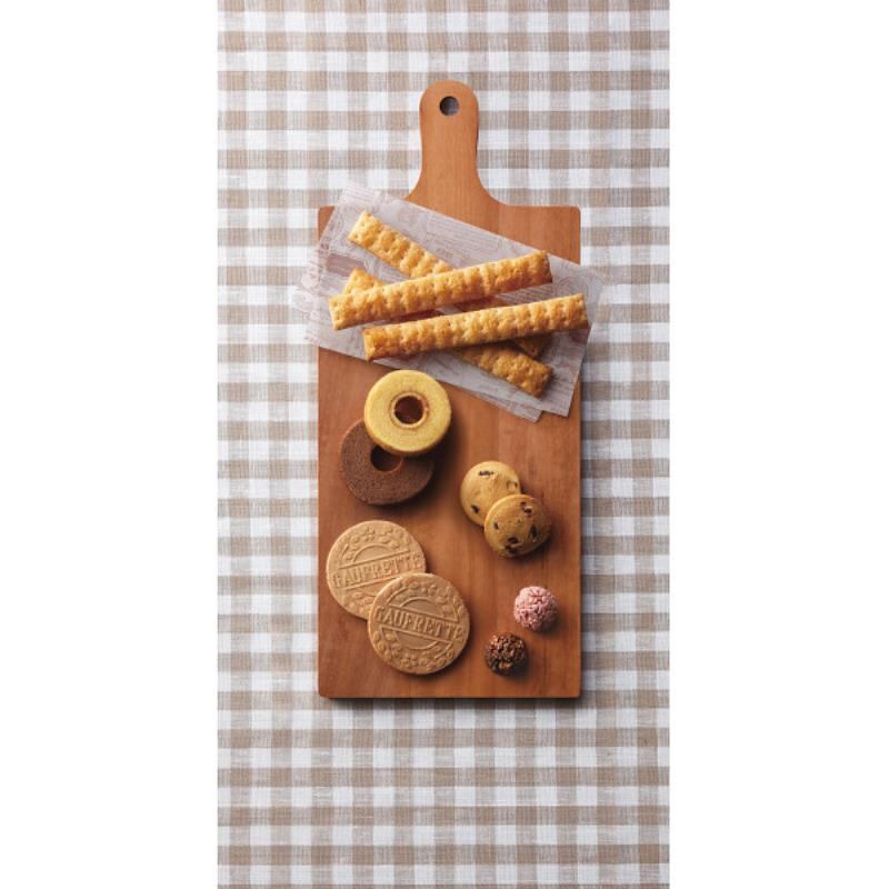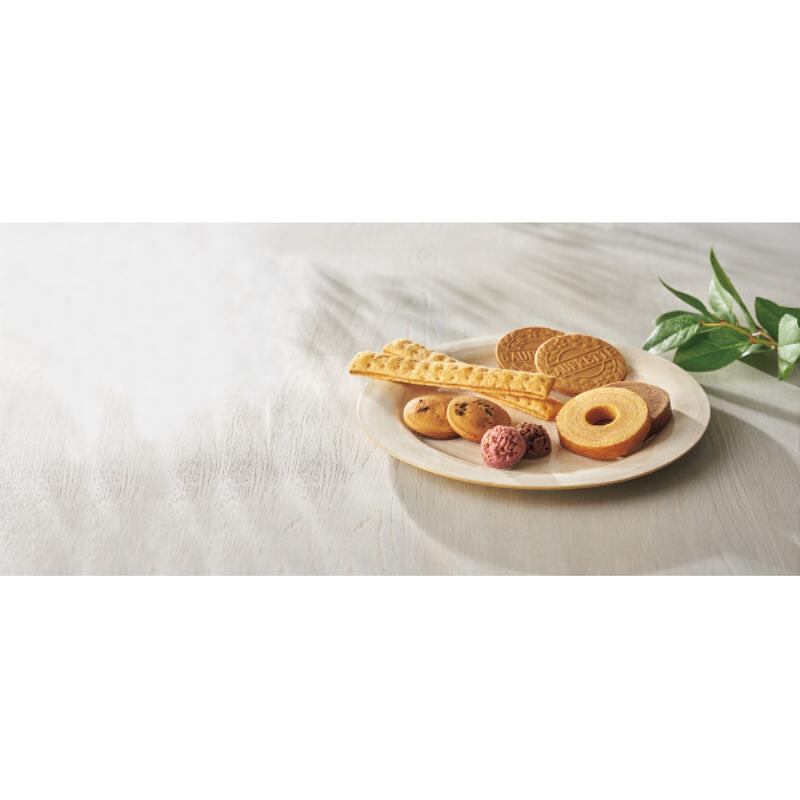 商品内容:●チョコチップクッキー×6、ロングスティックパイ×6、バウムクーヘン×4(ココア・バニラ×各2)、ゴーフレット×6(チョコ・バニラ×各3)、チョコレートクランチ×4(ミルク・ストロベリー×各2)