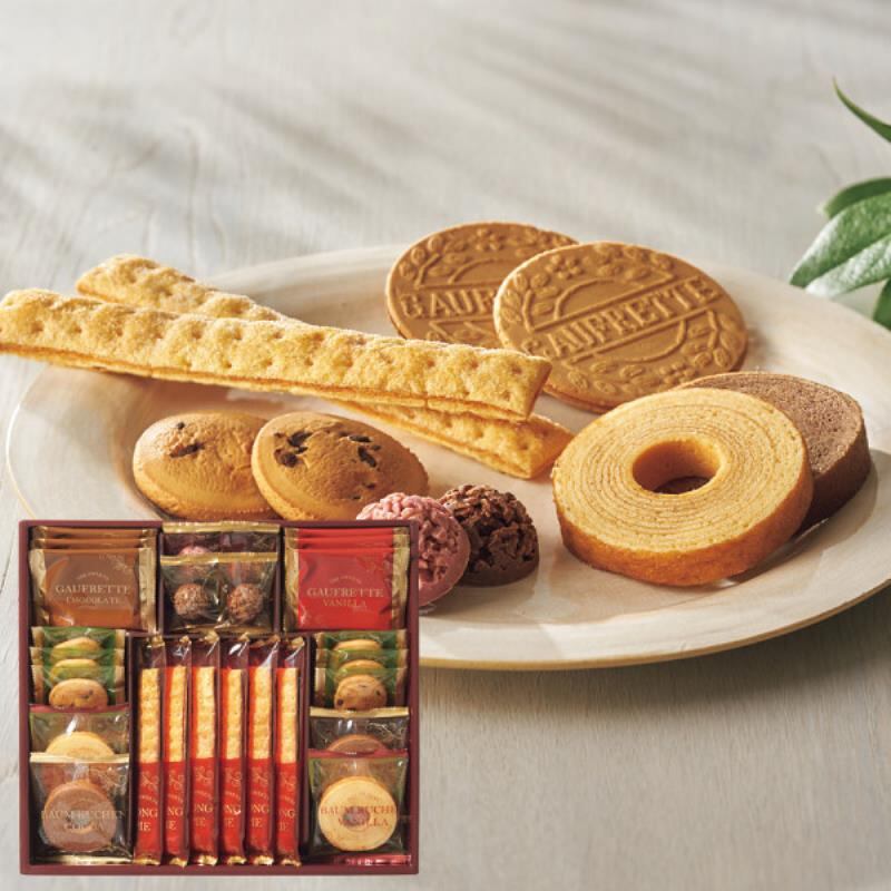 バラエティ豊かなスイーツの個性が集うお得なアソート。みんなの「おいしい」が聞こえてくるようなボリュームたっぷりなギフトです。
