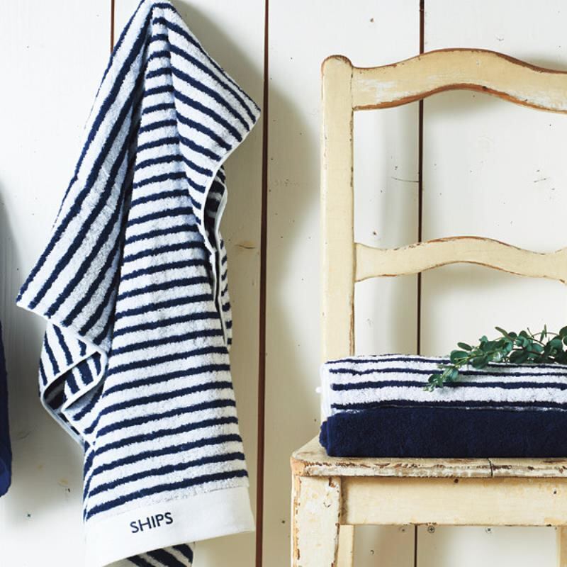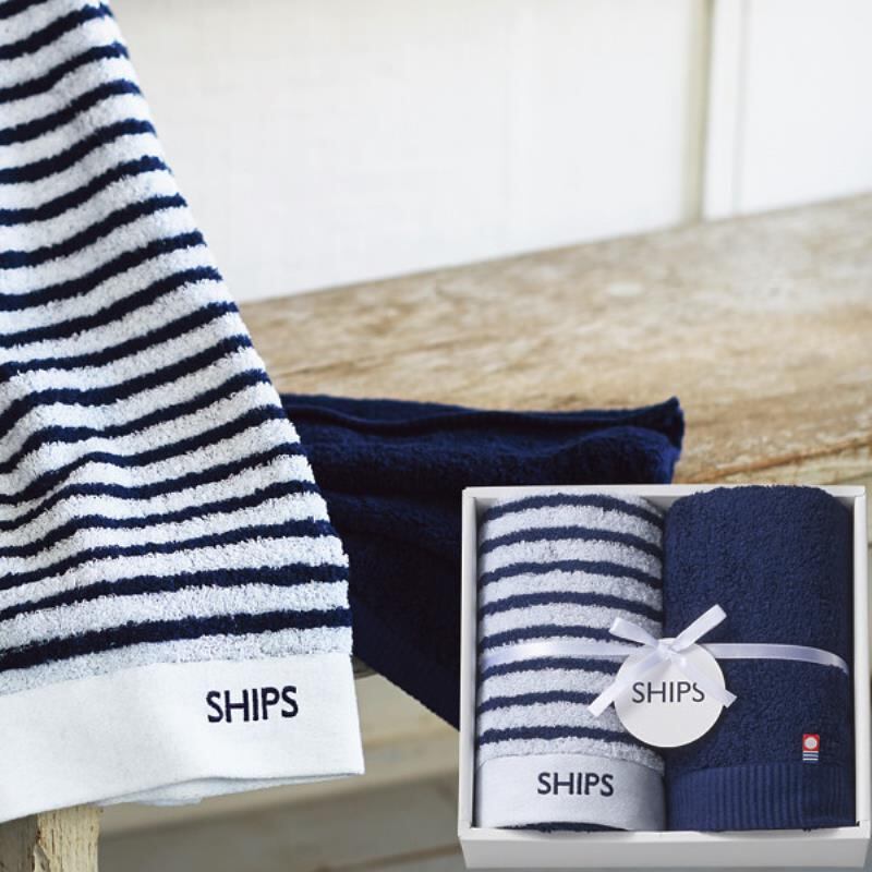 STYLISH STANDARDをコンセプトに展開する、シップスのボーダー柄とネイビーのベーシックな今治産タオルのセットです。
