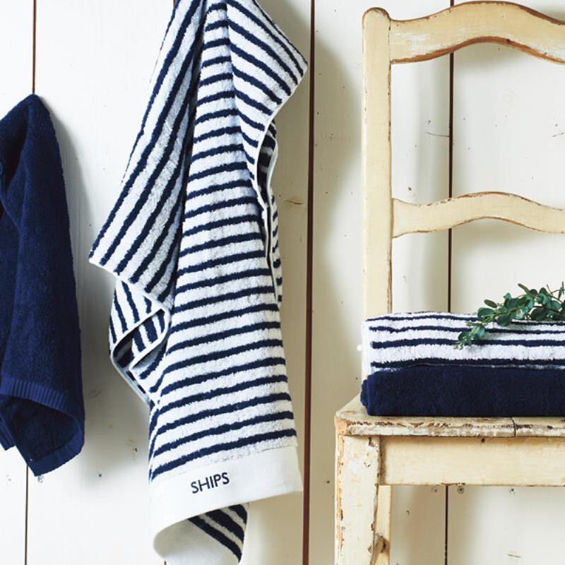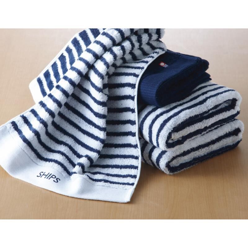 STYLISH STANDARDをコンセプトに展開する、シップスのボーダー柄とネイビーのベーシックな今治産タオルのセットです。