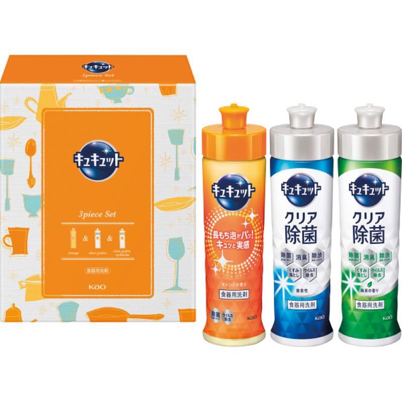 商品内容:●キュキュットオレンジの香り本体(220ml)・キュキュットクリア除菌微香本体(220ml)・キュキュットクリア除菌緑茶本体(220ml)×各1