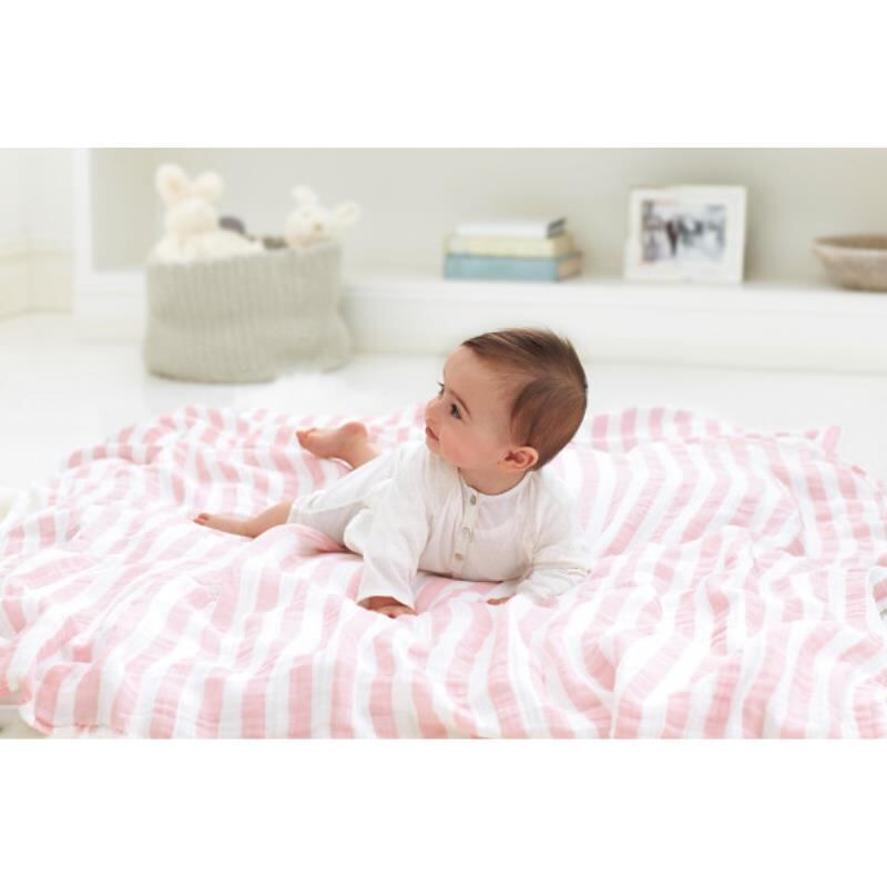 コットンモスリン製の大判なスワドルは洗うほどに柔らかさや風合いが増し、赤ちゃんを優しく包みます。おくるみ以外にもベビーカーの日除け、おむつ替えシート、授乳ケープ、プレイマットやタオルとしてマルチにご使用でき、おうちの中からお出かけまで様々なシーンで活躍します。また、おくるみを巻くことで赤ちゃんを落ち着かせ安眠に導いたり、寝冷えなどを防ぐことができます。