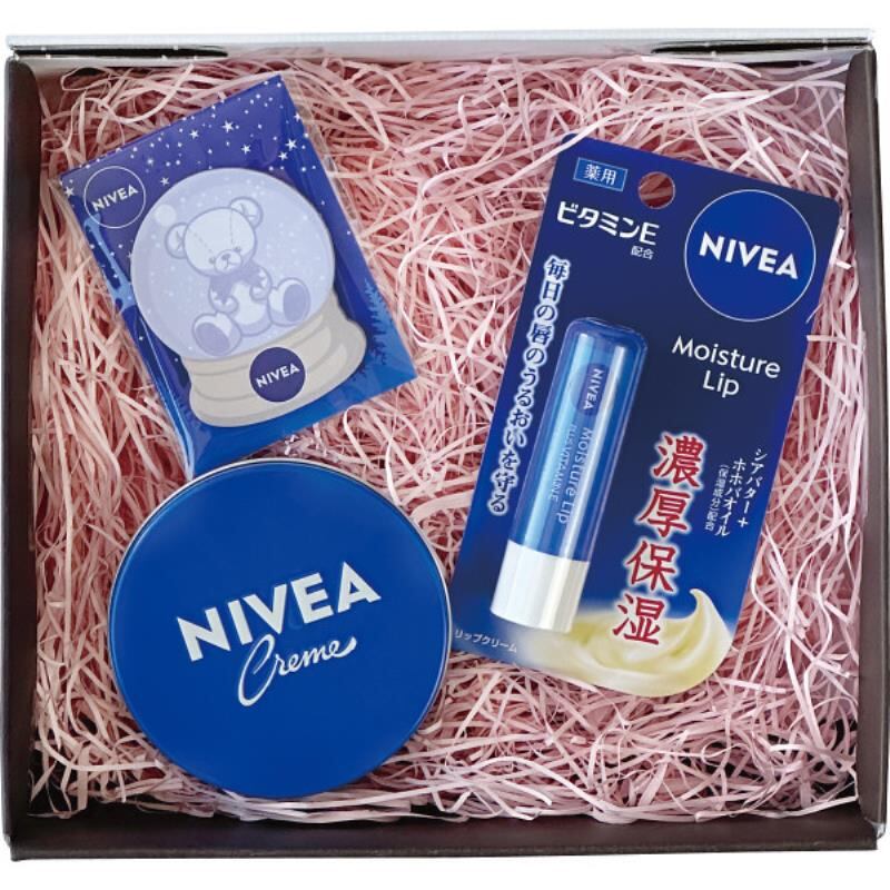 商品内容:●セット内容=ニベアクリーム56g×1、モイスチャーリップ3.9g×1、ニベアくまメモ帳×1