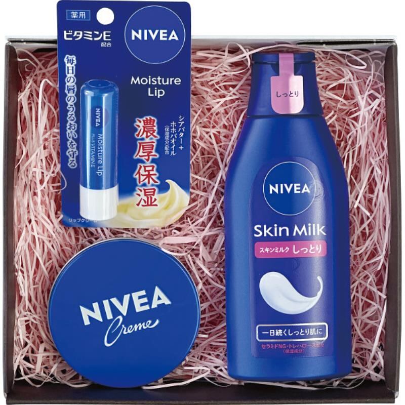商品内容:●セット内容=ニベアクリーム56g×1、モイスチャーリップ3.9g×1、スキンミルク200g×1