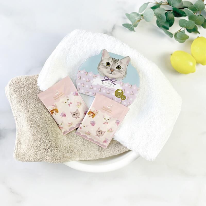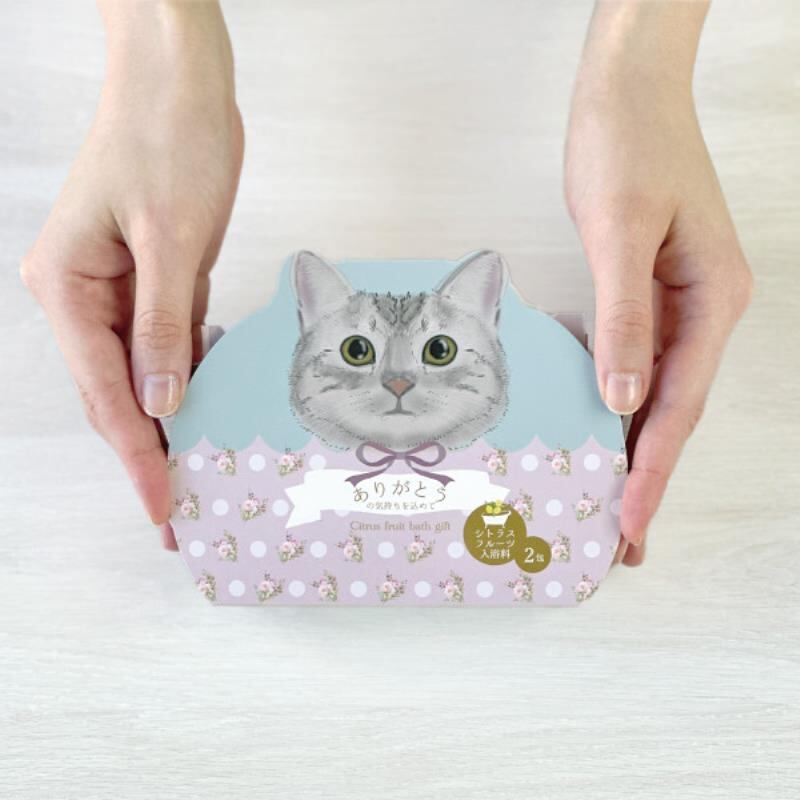 プチギフトにぴったり ねこ好きの方のギフトに。シトラスの香りの入浴料が2個セット入ったギフトセット