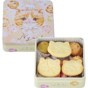 サクほろ食感のクッキーを詰め合わせたおすすめギフト缶です。5種類のクッキー、2種類のスノーボールクッキーの入ったバラエティ豊かな食感、フレーバーをお楽しみいただけます。猫クッキーのお顔は5種類あり、どの猫ちゃんが入っているかはお楽しみです!