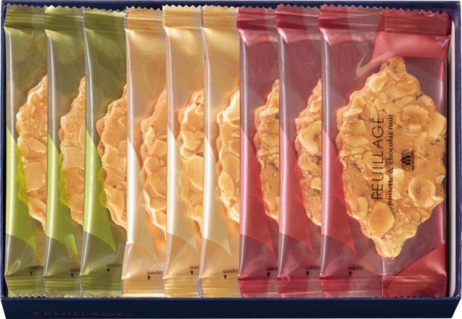 商品内容:アーモンド&ミルクチョコレート・アーモンド&ホワイトチョコレート・ヘーゼルナッツ&スイートチョコレート各3