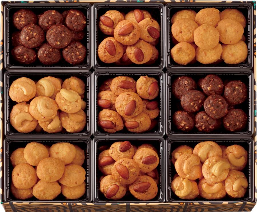 商品内容:アーモンド120g、カシューナッツ130g、マカデミアナッツ130g、チョコレートチップ130g