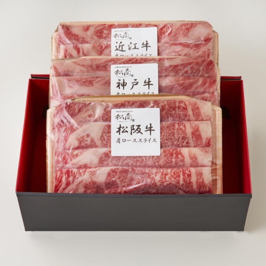 商品内容:松阪牛肩ロース:250g×1、神戸牛肩ロース:250g×1、近江牛肩ロース:250g×1