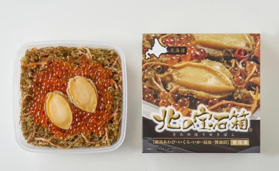 小麦、あわび、いくら、いか、さば、ゼラチン・大豆