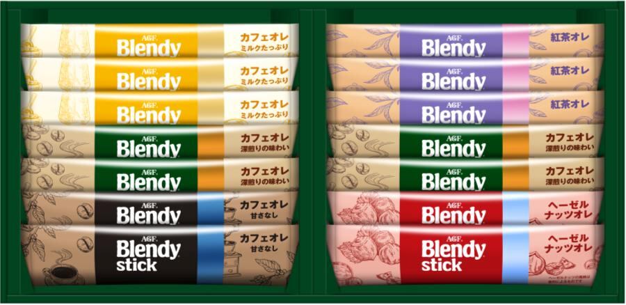 商品内容:ブレンディスティック(カフェオレ14g×4、カフェオレミルクたっぷり14g×3、カフェオレ甘さなし11.4g×2、紅茶オレ11g×3、ヘーゼルナッツオレ11g×2)