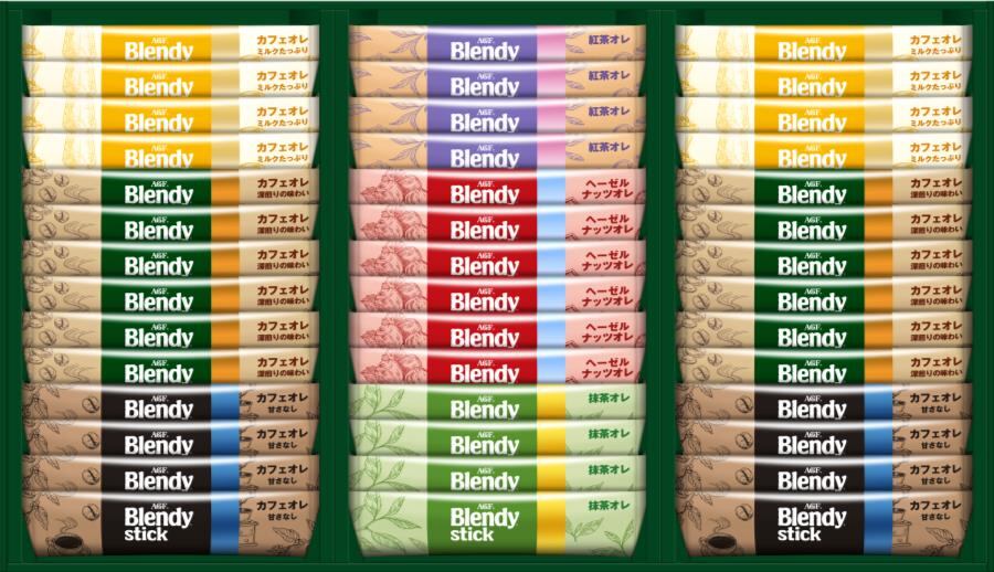 商品内容:ブレンディスティック(カフェオレ14g×12、カフェオレミルクたっぷり14g×8、カフェオレ甘さなし11.4g×8、紅茶オレ11g×4、ヘーゼルナッツオレ11g×6、抹茶オレ12g×4)