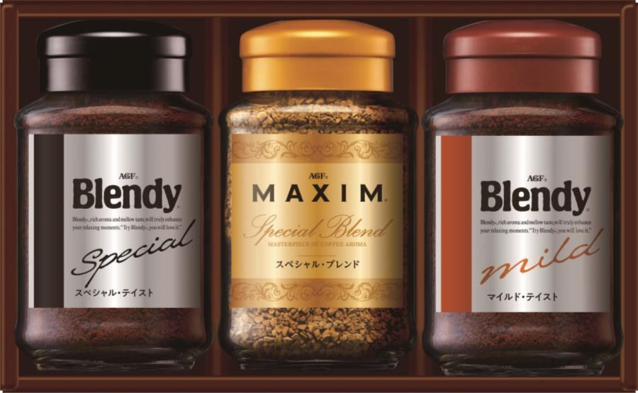 商品内容:マキシムインスタントコーヒースペシャルブレンド65g、ブレンディインスタントコーヒー(スペシャルテイスト70g、マイルドテイスト70g)