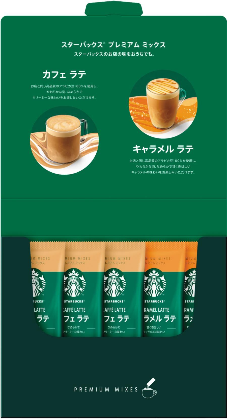 商品内容:カフェラテ18g×3、キャラメルラテ23g×2