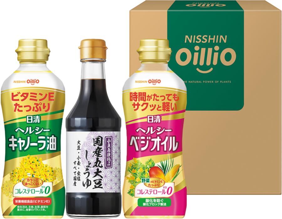 商品内容:ヘルシーキャノーラ油350g、エキストラバージンオリーブオイル145g、ヘルシーベジオイル350g