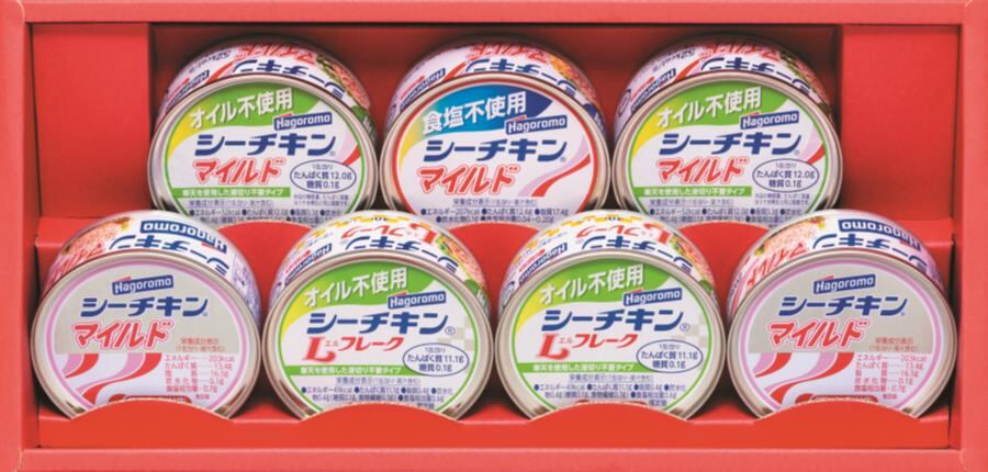 商品内容:オイル不使用シーチキンマイルド70g×2、食塩不使用シーチキンマイルド70g×1、シーチキンマイルド70g×2、オイル不使用シーチキンLフレーク70g×2