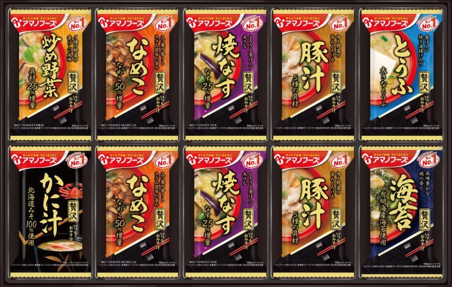 商品内容: (合計20食)いつものおみそ汁贅沢(焼なす、なめこ、豚汁)×各4食、いつものおみそ汁贅沢(とうふ、炒め野菜、海苔、かに汁)×各2食
