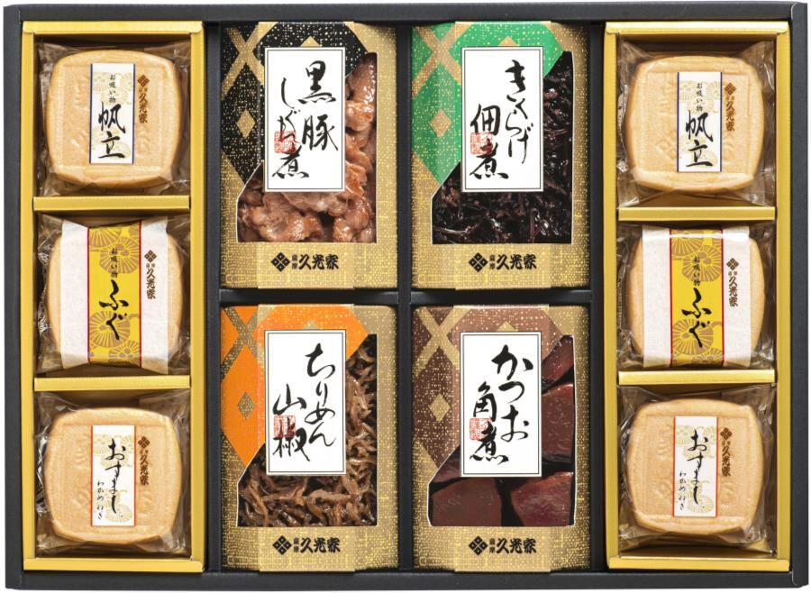 商品内容:お吸物(帆立・ふぐ・おすまし)×各2,黒豚しぐれ煮60g、きくらげ佃煮60g、ちりめん山椒50g、かつお角煮70g