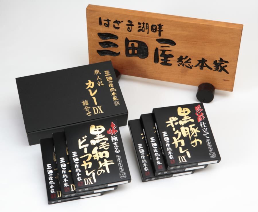 商品内容:味極まる黒毛和牛のビーフカレーDX220g×3,黒酢仕立て黒豚のポークカレーDX220g×3
