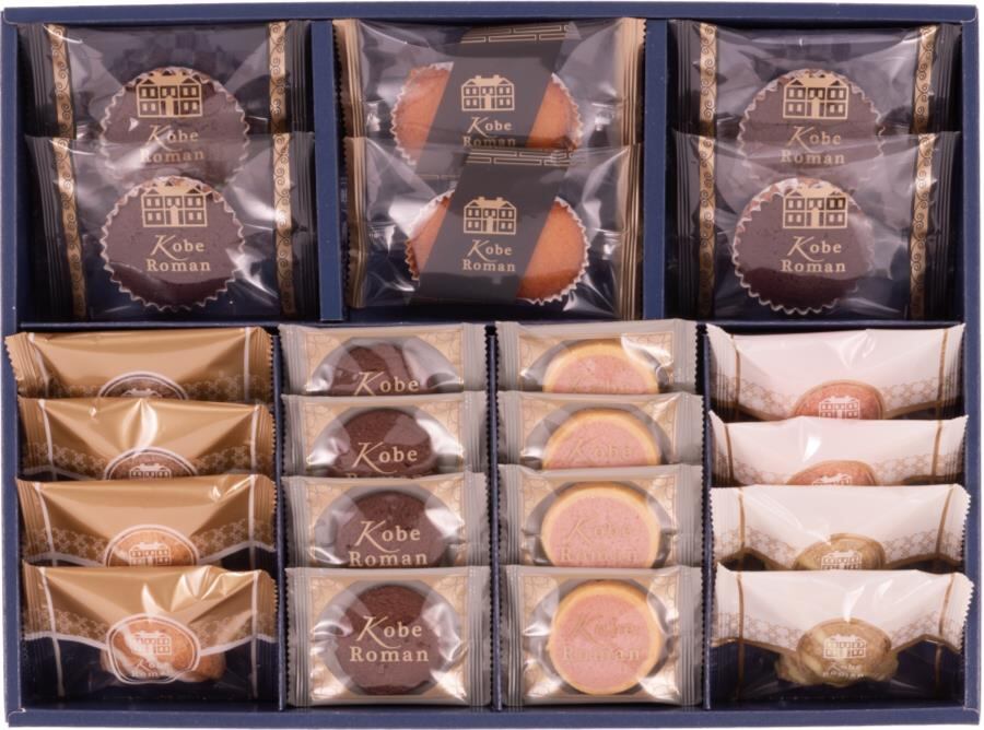 商品内容:フィナンシェ×2、チョコブラウニー×4、プレーンパイ・抹茶パイ・ストロベリーパイ・チョコパイ×各2、チョコチップクッキー×4、ブルーベリークッキー×4