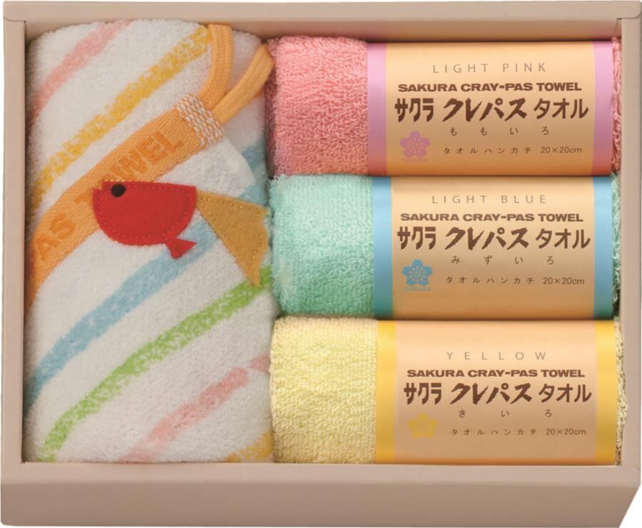 商品内容:ウォッシュタオル 1枚 約34×34cm、タオルハンカチ 3枚 約25×25cm