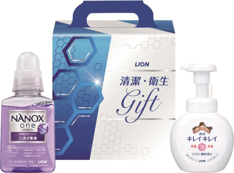 商品内容:NANOX oneニオイ専用本体380g×1、キレイキレイ薬用泡ハンドソープ本体250ml(医薬部外品)×1