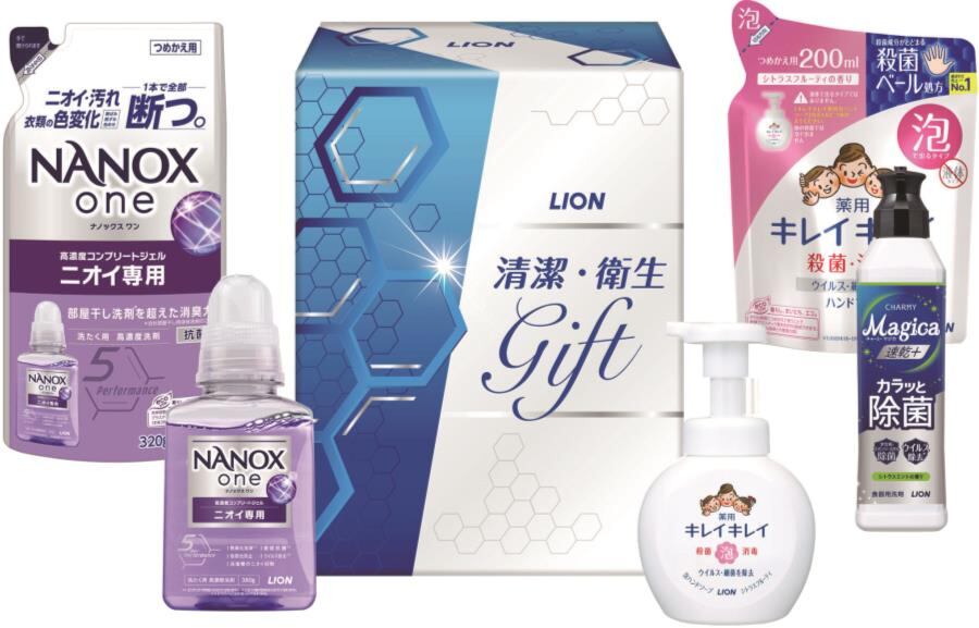 商品内容:NANOX oneニオイ専用本体380g×1、NANOX oneニオイ専用詰替320g×1、キレイキレイ薬用泡ハンドソープ本体250ml(医薬部外品)×1、キレイキレイ薬用泡ハンドソープ詰替200ml(医薬部外品)×1、CHRMY Magica除菌+(プラス)カラッと除菌シトラスミントの香り220ml×1