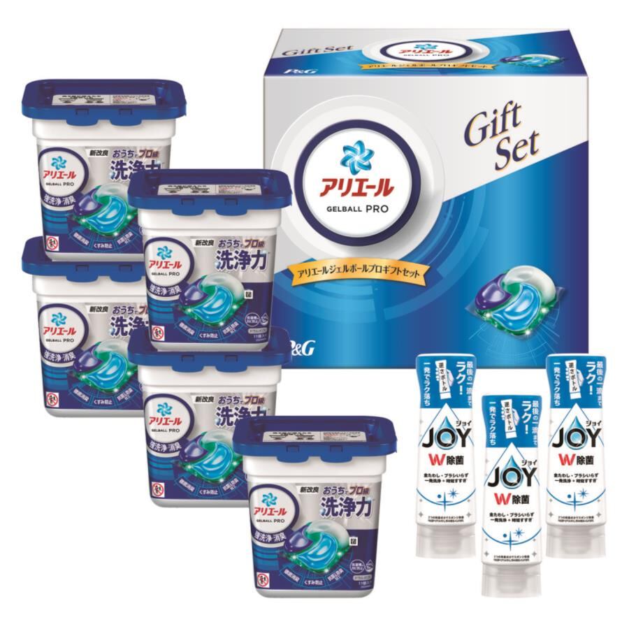 商品内容:アリエールジェルボールプロ本体11個×5、除菌ジョイコンパクト逆さボトル290ml×3