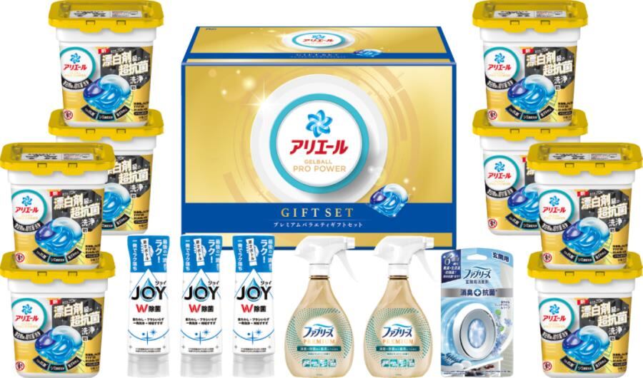 商品内容:アリエールジェルボールプロパワー本体9個×8、除菌ジョイコンパクト逆さボトル290ml×3、ファブリーズW除菌+消臭プレミアム清潔なランドリーの香り本体370ml×2、ファブリーズW消臭玄関用消臭剤+抗菌フレンチリネン&ソープ7ml×1