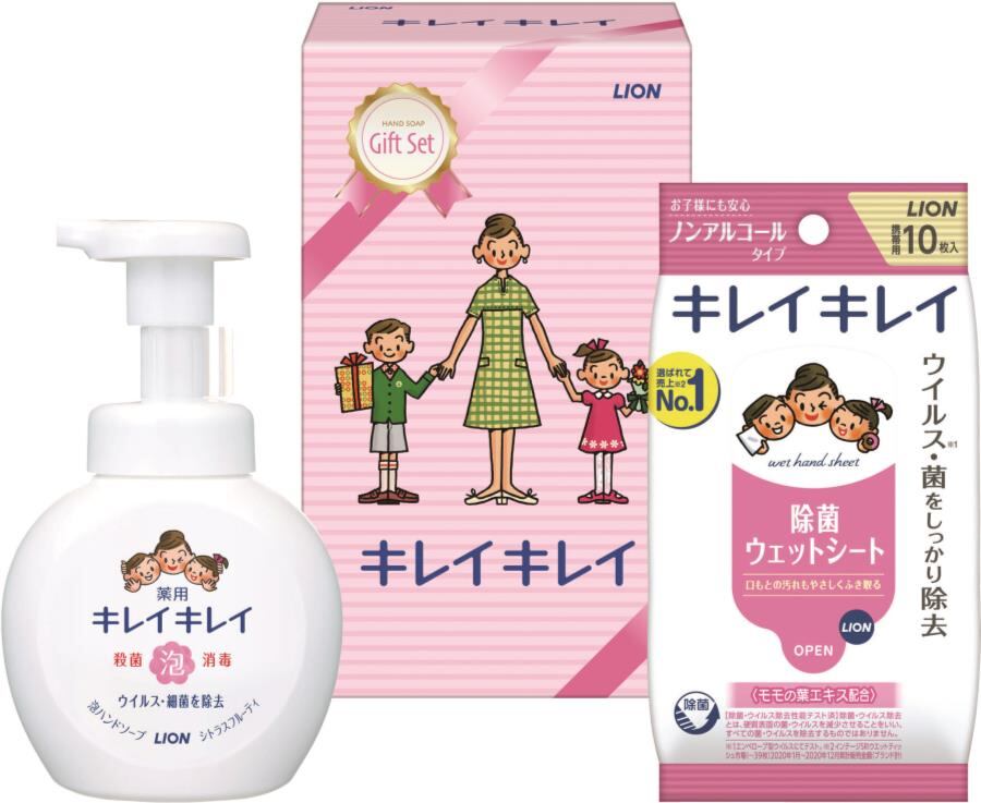 商品内容:キレイキレイ薬用泡ハンドソープ本体(医薬部外品)250ml×1、キレイキレイ除菌ウエットシートノンアルコールタイプ10枚×1