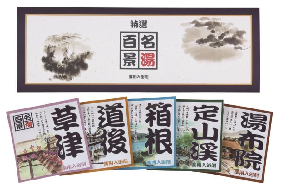 商品内容:入浴剤25g×5(草津×1、道後×1、箱根×1、定山渓×1、湯布院×1)