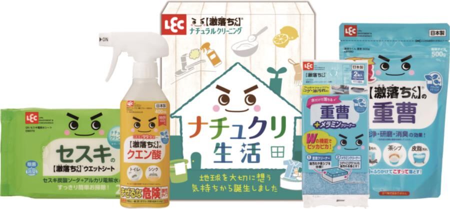 商品内容:激落ちくんクエン酸スプレー400ml (本体)、激落ちくん重曹500g、激落ちくん重曹メラミンクリーナー2枚入、GNセスキウェットシート20枚 ×各1