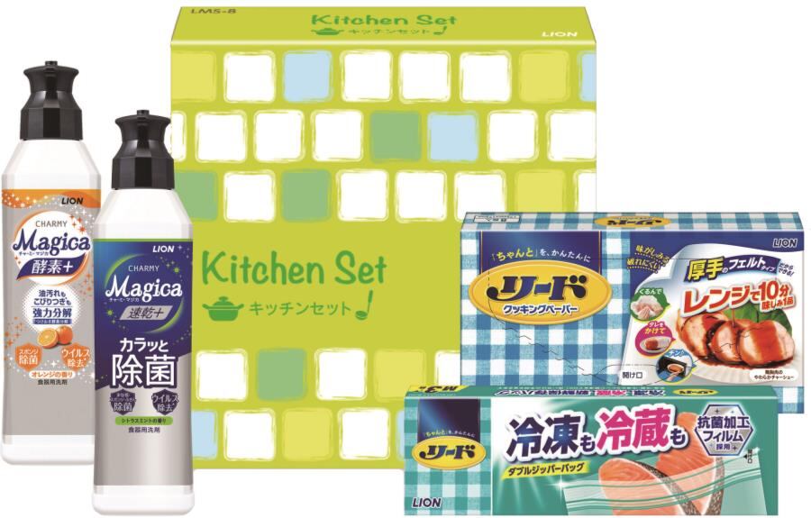 商品内容:CHARMY Magica 速乾+(プラス)カラッと除菌シトラスミントの香り220ml×1、CHARMY Magica 酵素+(プラス)オレンジの香り220ml×1、リードクッキングペーパー小8枚箱入×1、リード冷凍も冷蔵も新鮮保存バッグM3枚箱入×1