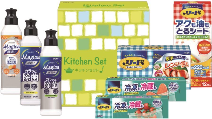 商品内容:CHARMY Magica 速乾+(プラス)カラッと除菌シトラスミントの香り220ml×1、CHARMY Magica 速乾+(プラス)カラッと除菌クリアレモンの香り220ml×1、CHARMY Magica 酵素+(プラス)オレンジの香り220ml×1、リードクッキングペーパー小12枚箱入×1、リード冷凍も冷蔵も新鮮保存バッグS3枚箱入×1、リード冷凍も冷蔵も新鮮保存バッグM5枚箱入×1、リードアクも油もとるシート中12枚×1