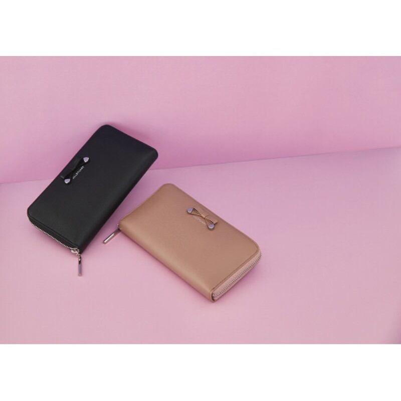 リボンをあしらいさりげなくも可愛らしい、ベーシックなお財布です。キズがつきにくい素材にラメを散りばめ、シンプルかつフェミニンで飽きのこないデザインなので長くお使いいただけます。