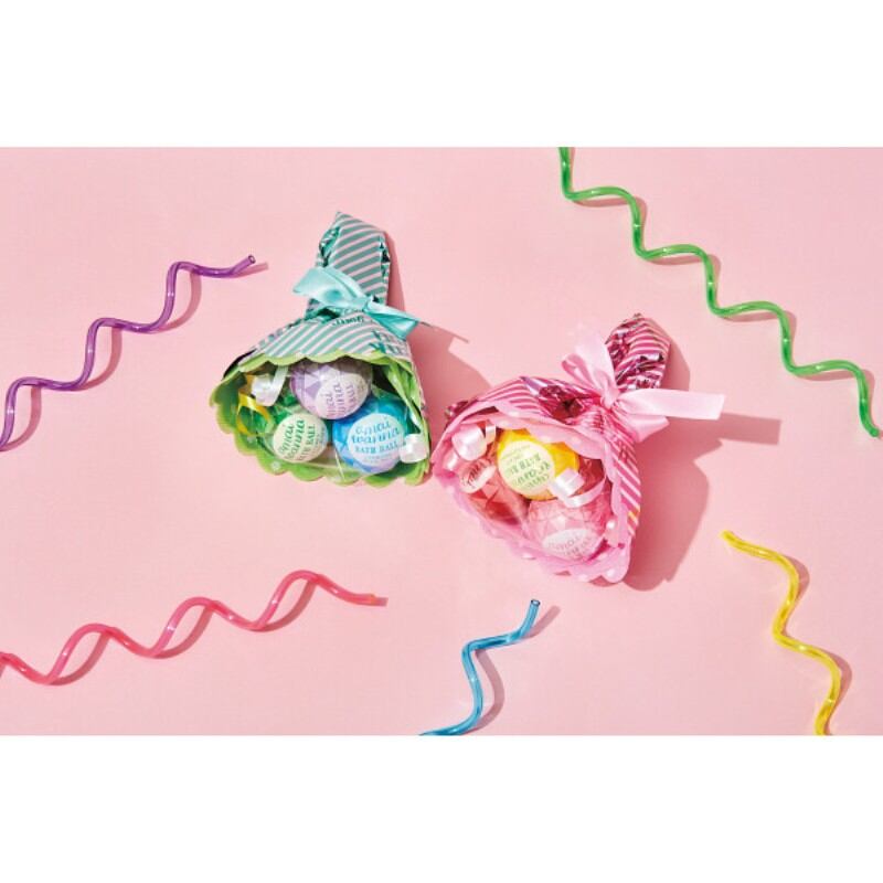 発泡入浴料バスボール3個が入ったブーケ型ギフトです。シュワシュワ溶けてフレッシュな香りが広がります。