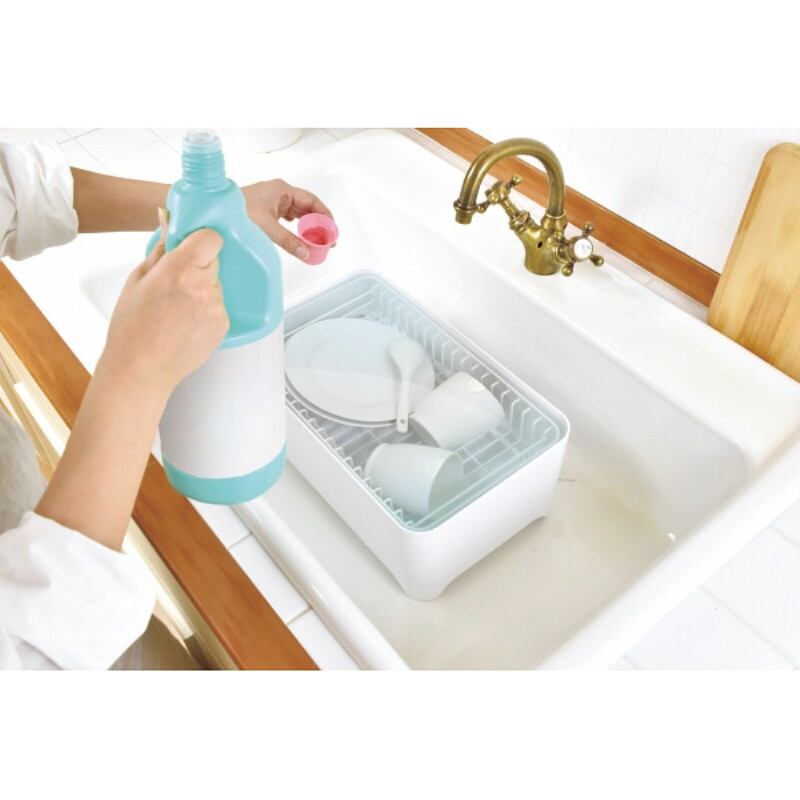 大容量なのにスッキリ収納。キッチンの形に合わせ自由に拡張、配置できます。トレーが蓋になるので水切りかごを出したままでも来客時に生活感を消すことができます。付属の排水キャップは紛失しないように裏面に収納場所があり、パーツの収納・保管も困りません。バスケットごとつけおき洗いができるのでお手入れも楽々です。