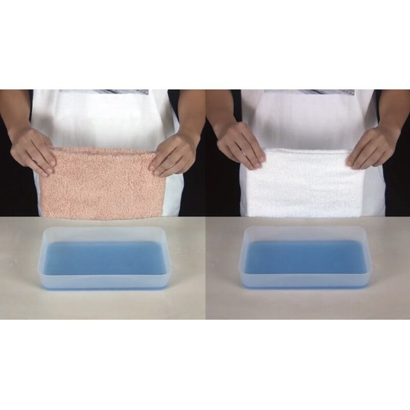 「1秒タオル」とは、タオルを1cm角に切り取った試験片を水に浮かべた時、1秒以内に沈み始めるタオルのことです。このシリーズは公的機関である東京都立産業技術センターでも同様の試験を実施し、「1秒タオル」の認定を受けているタオルシリーズです。