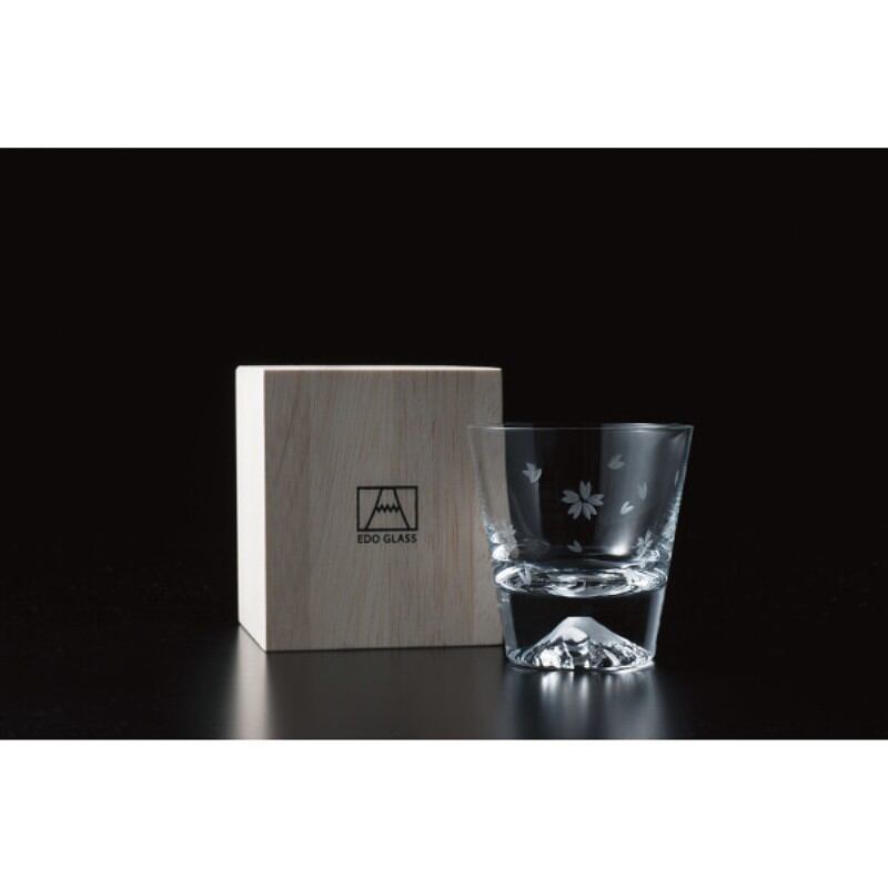 グラスの底にそびえ立つ麗峰富士。江戸時代からの硝子製法を受け継いだ「江戸硝子」と富士山がコラボレーションしたタンブラーです。表情豊かな富士山を眺めながら楽しむ、寛ぎの時間をプレゼントしませんか。注いだ飲み物の色合いが山肌に反射してさまざまな表情の富士山を楽しむことが出来ます。桜柄の布に包んでお届けします。