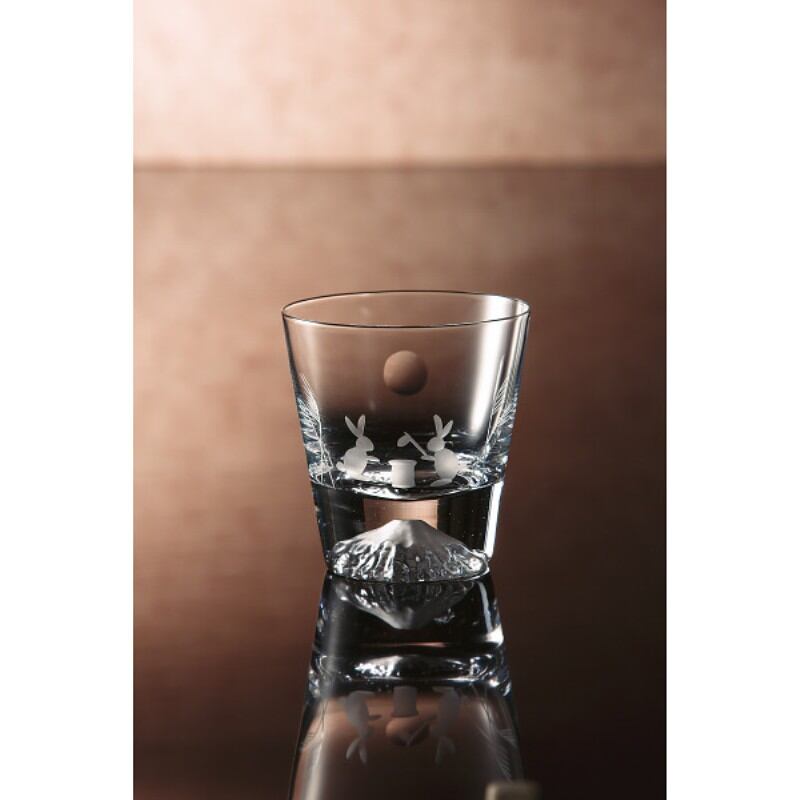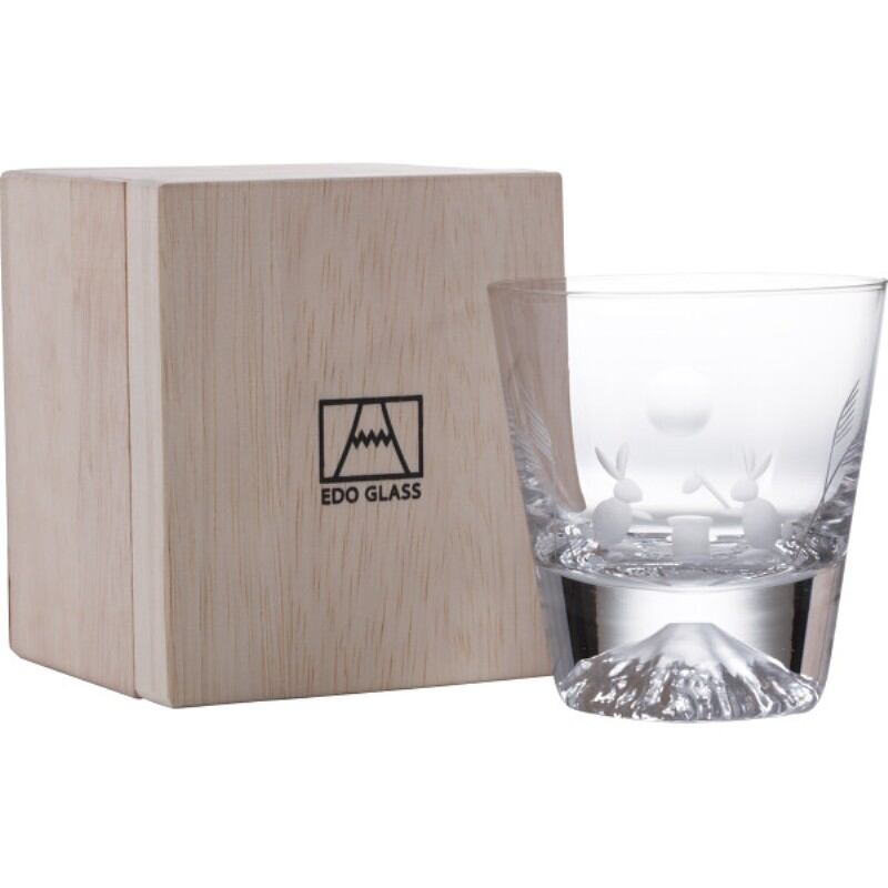 田島窯 江戸硝子 富士山 ロックグラス(木箱入) 月とうさぎ TGS-19T-R2